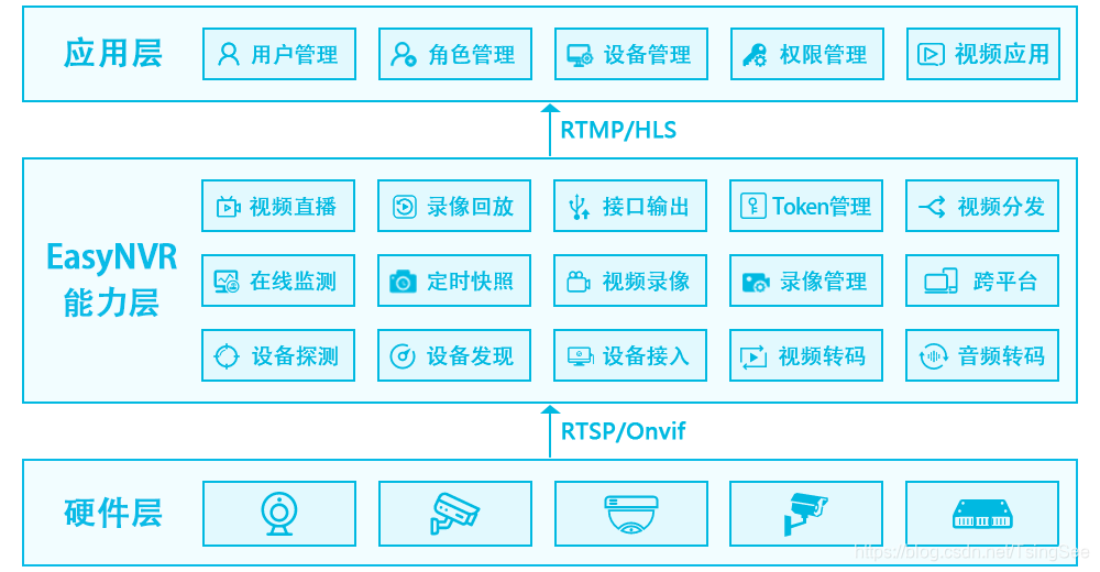 EasyNVR是一款拥有完整、自主、可控知识产权,同时又能够具备软硬一体功能的安防互联网化流媒体服务器,能够通过简单的网络摄像机通道配置,将传统监控行业里面的高清网络摄像机IP Camera、NVR等具有RTSP、Onvif协议输出的设备接入到EasyNVR,EasyNVR能够将这些视频源的音视频数据进行拉取,转换为RTMP/HLS,进行全平台终端H5直播(Web、Android、iOS),并且EasyNVR能够将视频源的直播数据对接到第三方CDN网络,实现互联网级别的直播分发。